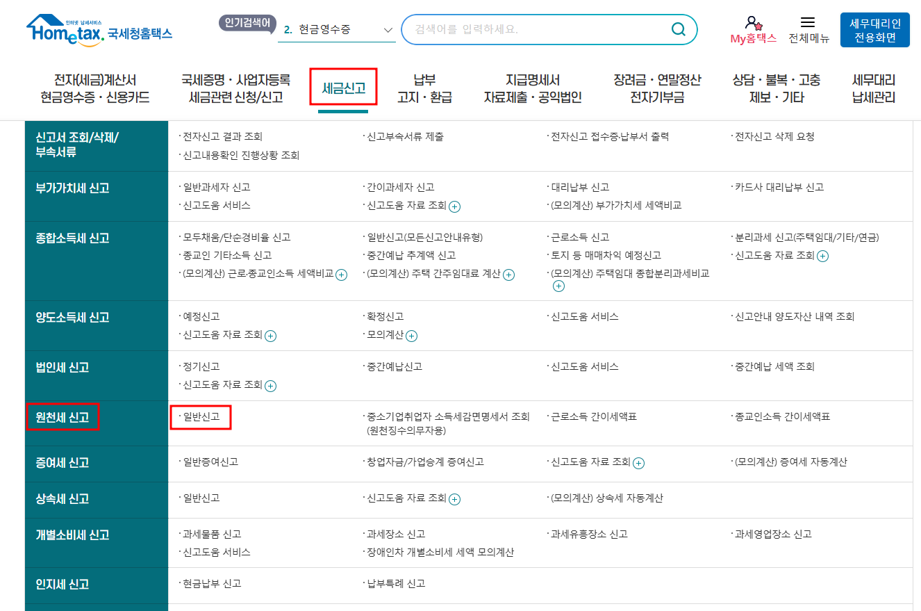 1. 원천징수 의무구분 조회 - 홈택스